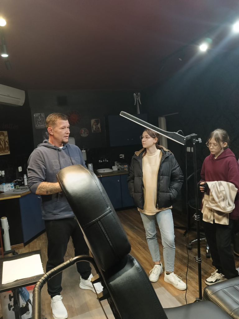 Uczniowie klasy 7-8a wzięli udział w wycieczce zawodoznawczej do Pogorzeli. Celem wyjazdu było poznanie różnych zawodów oraz zdobycie wiedzy o realiach pracy w wybranych miejscach. Pierwszym punktem naszej wizyty było studio tatuażu Abuk Tattoo, gdzie poznaliśmy tajniki pracy tatuażysty. Dowiedzieliśmy się jak wygląda proces tworzenia tatuażu, jakie narzędzia są używane oraz jak ważne są zasady higieny i precyzja w tym zawodzie. Następnie odwiedziliśmy ubezpieczalnię, w której p. Ryszard opowiedział nam o swojej codziennej pracy. Poznaliśmy, na czym polega obsługa klientów, jakie są rodzaje ubezpieczeń oraz jak wygląda proces zawierania umów. Wycieczka była bardzo ciekawa i pozwoliła nam lepiej zrozumieć różnorodność zawodów oraz wymagania jakie wiążą się z każdą profesją.