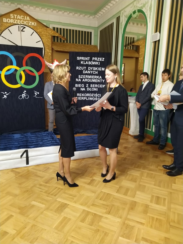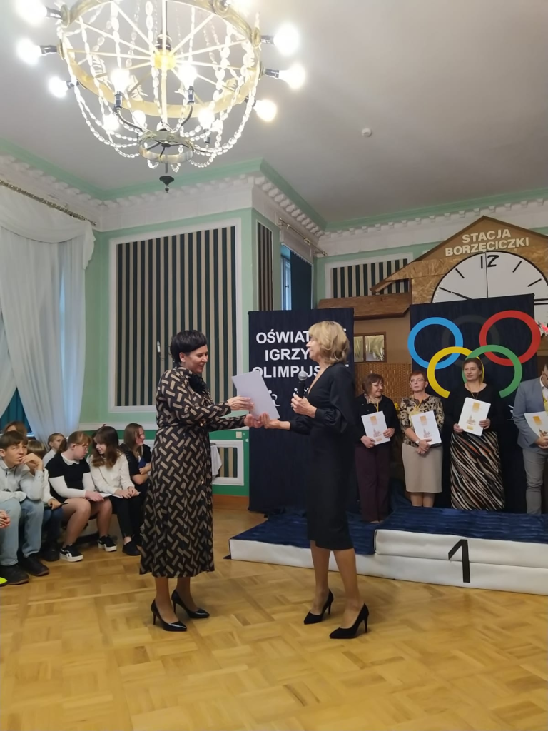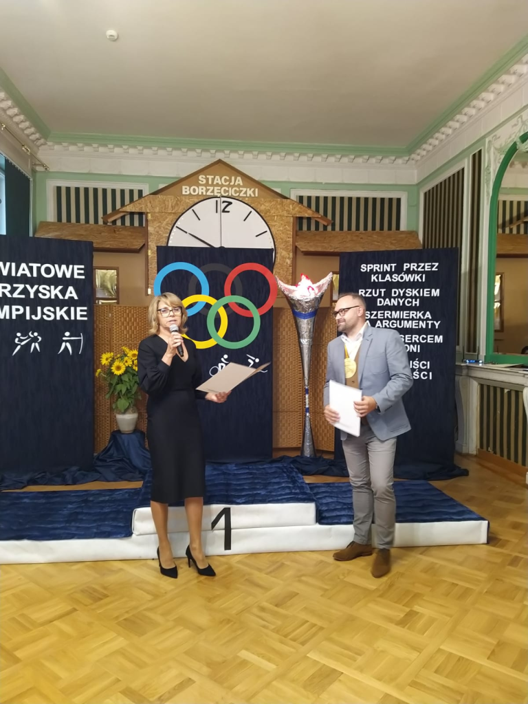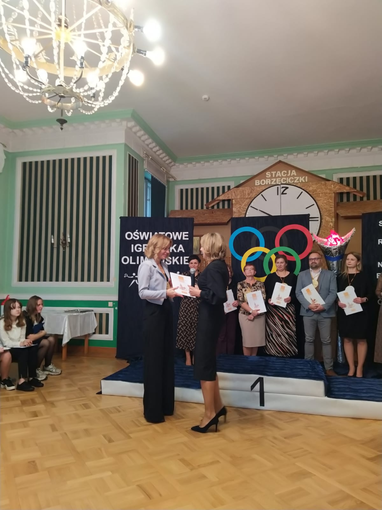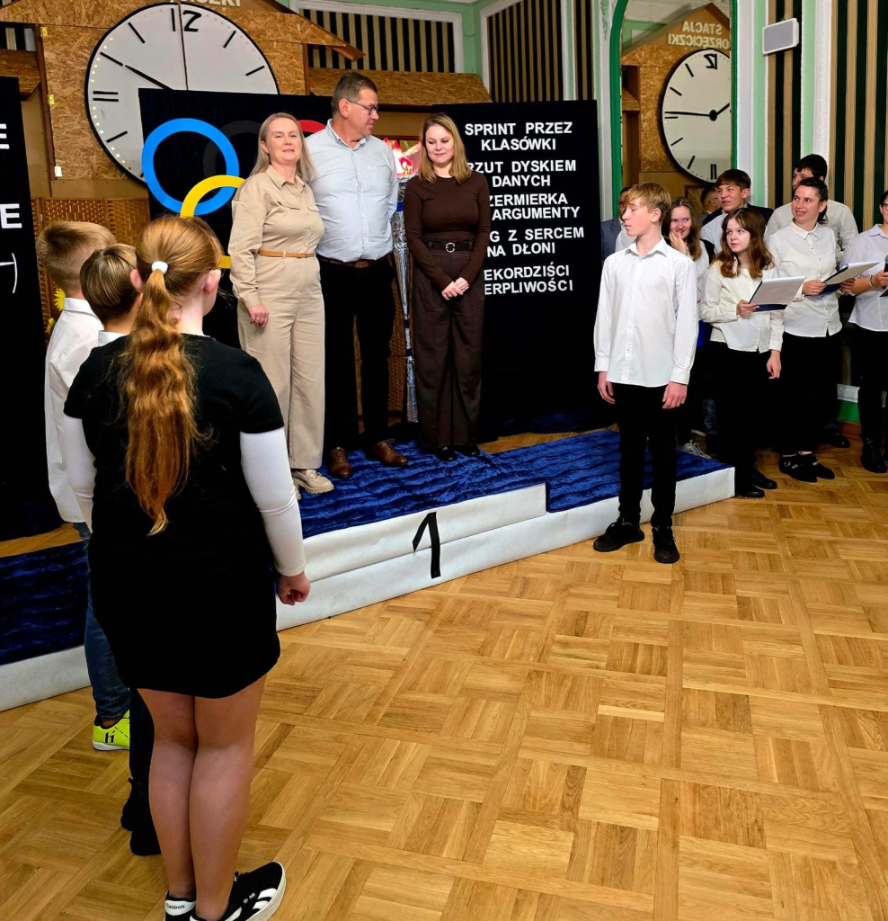 egoroczne obchody Dnia Edukacji Narodowej i Dnia Patrona naszej szkoły przebiegły pod wyjątkowym tytułem „Oświatowe Igrzyska Olimpijskie”. Uroczystość rozpoczęła się od gali, podczas której w różnych, niecodziennych dyscyplinach wyróżnieni zostali wszyscy nauczyciele oraz pracownicy niepedagogiczni. Z radością i humorem odebrali oni medale oraz tytuły, które podkreślały ich zaangażowanie, cierpliwość, poczucie humoru czy kreatywność. Specjalne laury trafiły także do każdej klasy za wyjątkowy „charakter klasy”, który najlepiej oddawał jej ducha i klimat.