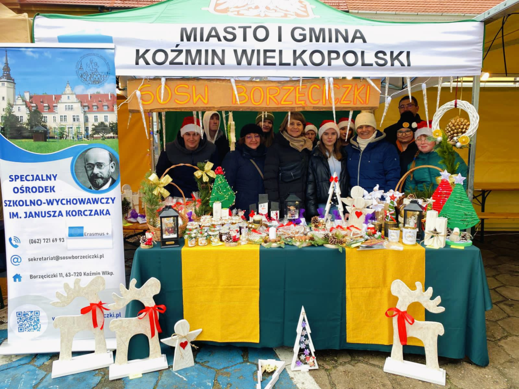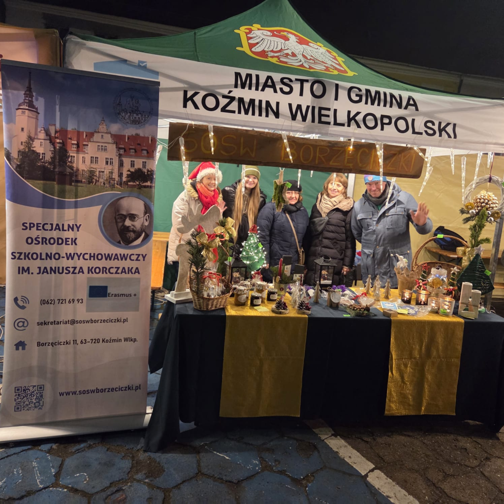 Koźmińskie Mikołajki po raz kolejny zgromadziły mieszkańców i gości w wyjątkowej, świątecznej atmosferze, a nasz Ośrodek miał przyjemność być częścią tego wydarzenia. Przygotowania trwały od dłuższego czasu. W pracowni technicznej powstawały drewniane aniołki i renifery, ozdoby szydełkowe oraz świąteczne stroiki. Równolegle w pracowni kulinarnej wypiekano pierniki i tworzono domowe przysmaki – konfitury oraz dynie w occie jabłkowym. Wszystkie te wyroby można było znaleźć na naszym stoisku. Wychowankowie chętnie pomagali podczas wydarzenia, a mieszkańcy Koźmina i okolic z dużym zainteresowaniem oglądali i kupowali przygotowane wyroby. Grupa naszych uczniów zaprezentowała się również artystycznie w piosence z układem choreograficznym „Mikołaj tu, Mikołaj tam”. Duże emocje wzbudził Mikołaj na dachu koźmińskiej kamienicy oraz moment włączenia świątecznej iluminacji. Mikołajki to magiczny dzień pełen radości i niespodzianek – tą atmosferą z radością dzielimy się w tym przedświątecznym czasie.
