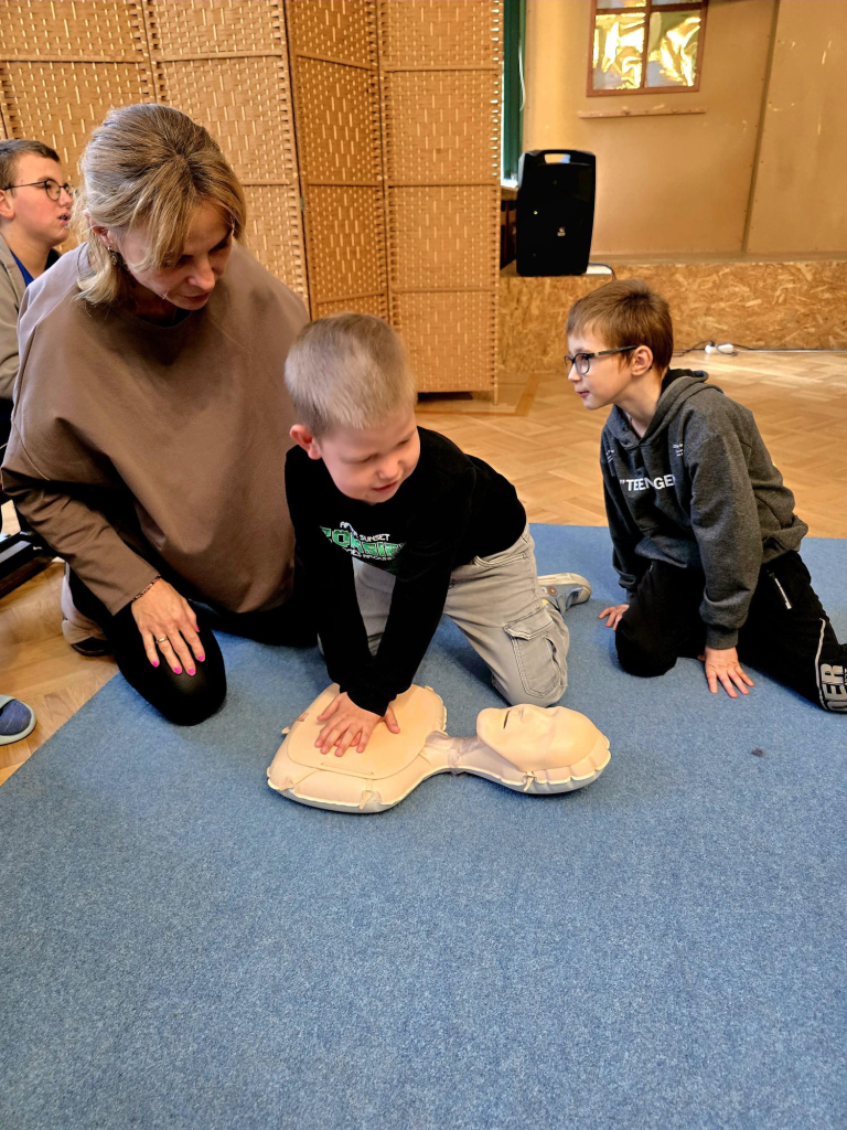 Cała społeczność szkolna z zaangażowaniem uczestniczyła w wydarzeniu, utrwalając wiedzę i umiejętności, które mogą kiedyś uratować komuś życie.