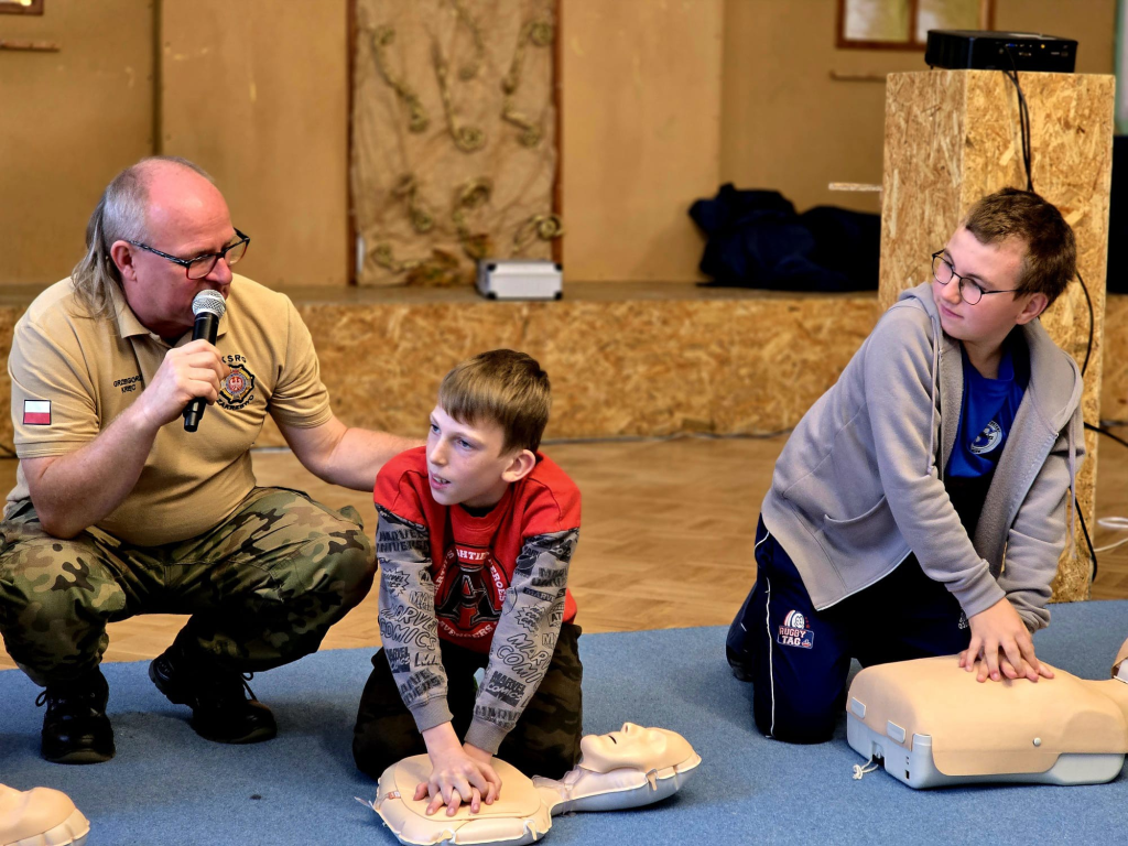 Pomysłodawcą wydarzenia jest Fundacja Wielka Orkiestra Świątecznej Pomocy, która od lat promuje naukę pierwszej pomocy wśród dzieci i młodzieży. W naszej szkole organizacją akcji zajął się pan Mariusz, który zaprosił wyjątkowego gościa – pana Grzegorza, wykwalifikowanego ratownika i strażaka OSP. Podczas spotkania panowie przekazali uczniom wiele cennych informacji na temat udzielania pierwszej pomocy przedmedycznej. Następnie uczniowie przystąpili do bicia rekordu, ćwicząc na fantomach przekazanych przez WOŚP w ramach programu „Ratujemy i uczymy ratować”.