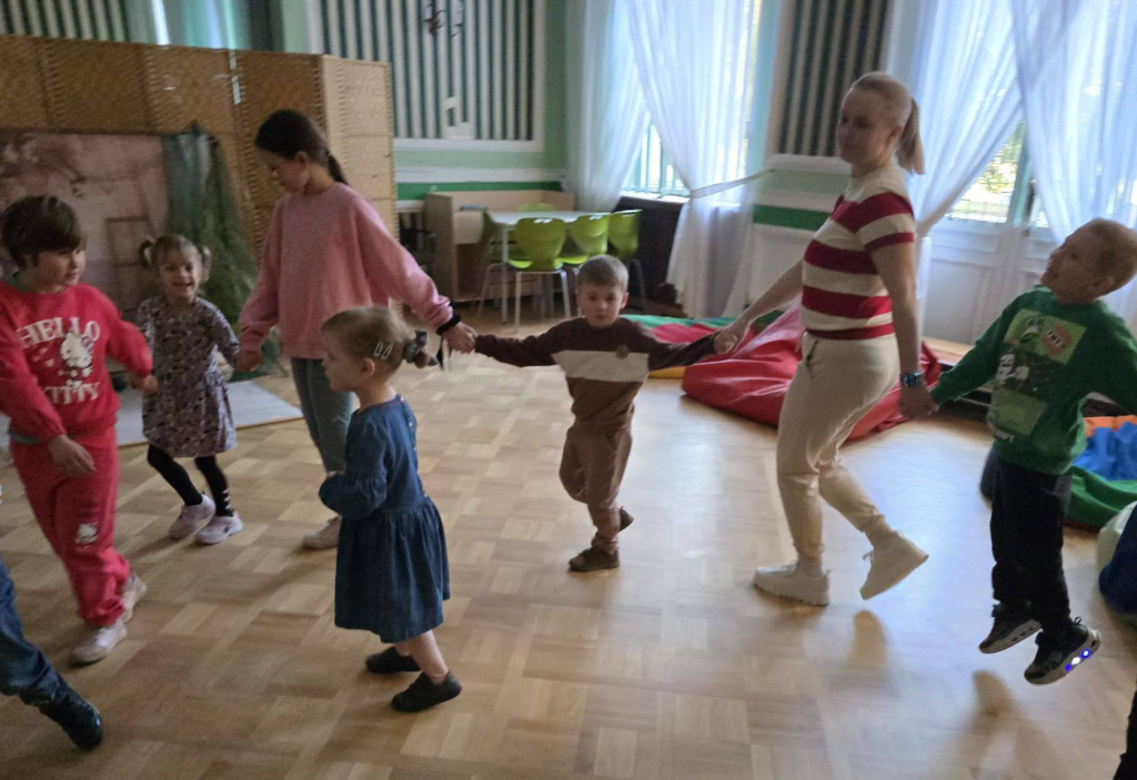 Wiosenne spotkanie w zespole Wczesnego Wspomagania Rozwoju Dziecka było wspaniałą okazją do wspólnych rozmów oraz integracji przy słodkim poczęstunku. Rodzice mieli możliwość wysłuchania interesującej prelekcji naszej pani psycholog na temat trudnych emocji i zachowań dzieci. W tym samym czasie uczestnicy zajęć brali udział w radosnych zabawach ruchowych. Zwieńczeniem spotkania była wspólna sesja Programów Aktywności Christophera Knilla. Dzieci wraz z rodzicami, poprzez rytmiczny dotyk i ruch, budowały wzajemną bliskość oraz świadomość ciała.