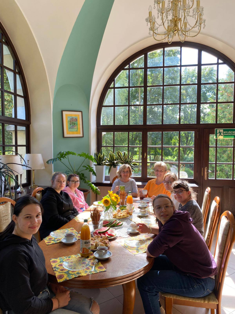 Spotkanie integracyjne klasy II-III pb przebiegało pod hasłem „Wrześniowe słoneczniki”. Uczennice miały za zadanie wyszukać w internecie ciekawych informacji na temat słonecznika. Dzięki temu poznały walory zdrowotne tej rośliny jak i zastosowanie w bukieciarstwie. Większość czasu spędziły jednak na świeżym powietrzu, wykorzystując piękną słoneczną pogodę. Klasa wykorzystała atuty przyrodnicze terenu naszego Ośrodka: ogród horteterapii oraz „Zielony zakątek”. Odbyło się również wspólne pieczenie kiełbasek przy ognisku oraz biesiadowanie przy stole. Uczennice na zajęciach kulinarnych upiekły pyszny placek drożdżowy. Dzień wcześniej klasa wybrała się do sklepu. Tam podopieczne samodzielnie dokonały zakupów według wcześniej sporządzonej listy potrzebnych produktów. Spotkanie oraz wcześniejsze przygotowania dały możliwość jeszcze lepszego zintegrowania klasy.