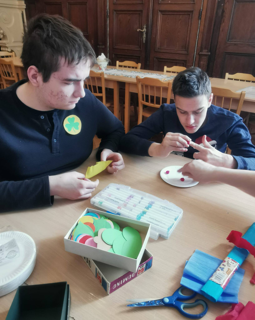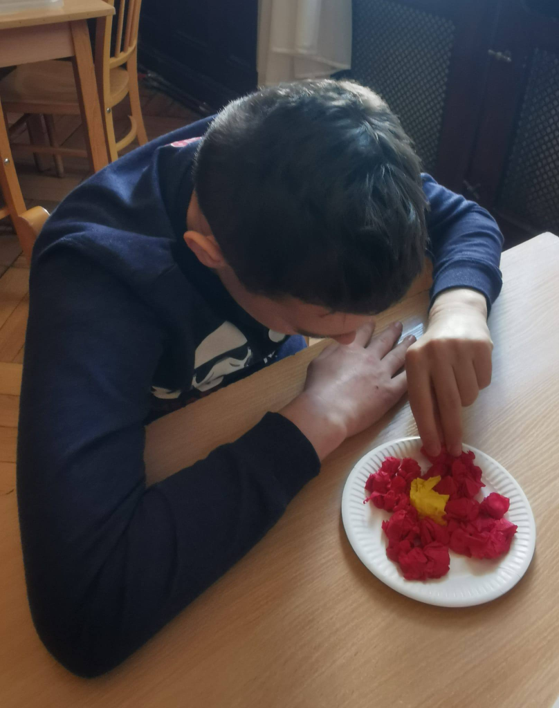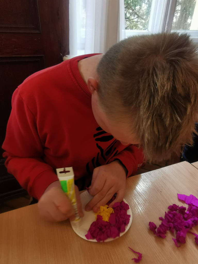 Uczniowie z klasy 5-7-8e i 7-8d ze swoimi paniami zorganizowali po raz kolejny warsztaty plastyczne w ramach projektu ” Rok Dziecięcej Kreatywności – Interdyscyplinarne Warsztaty dla Uczniów z SPE.” Tematem wiodącym była „Wiosna w rozkwicie – kwiaty marzeń.” Uczniowie tworzyli swoje kwiaty wykorzystując papierowe talerzyki, płatki kosmetyczne, papier kolorowy i bibułę. Powstały bardzo piękne i ciekawe prace. Rozmawiano o urokach wiosny, rozwiązywano zagadki związane z tematyką warsztatów. Nasze wspólne działania rozwijają cierpliwość, wyobraźnię, kreatywność i służą dalszej integracji zespołów klasowych. Po wykonaniu prac przygotowano wystawę gdzie wyeksponowane zostały „kwiaty marzeń”. Końcowym punktem warsztatów był owocowy poczęstunek z sokami, musem jabłkowym i pysznymi truskawkowymi babeczkami. Bardzo szybko upłynął nam czas na wspólnej pracy, ale też na zabawie i miłych rozmowach.