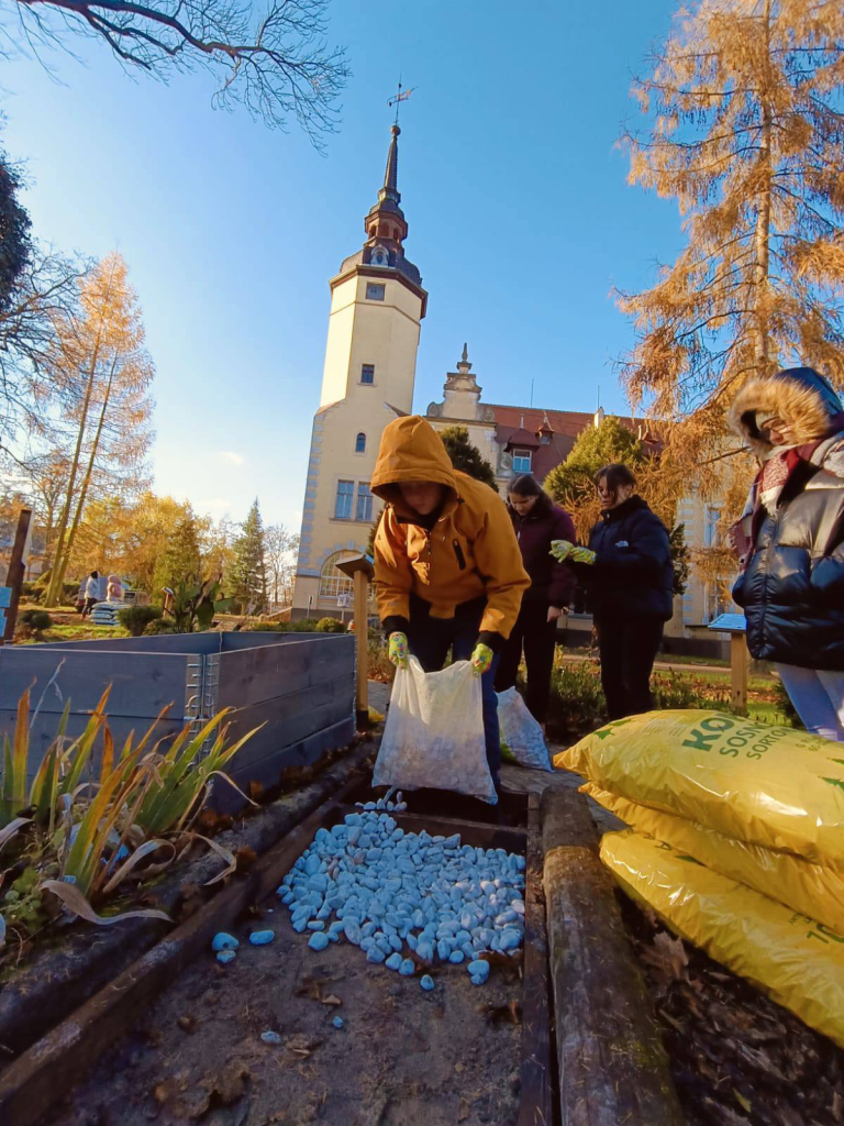 Nowa ścieżka sensoryczna i zielona metamorfoza ogrodu hortiterapii! (projekt „Gra o Transformację”, dofinansowany z programu „Wspólnie dla Regionu” Fundacji Veolia Polska). W naszym ogrodzie hortiterapii zaszły wielkie zmiany! Powstała ścieżka sensoryczna z różnorodnych materiałów, która wspiera regulację napięcia, równowagę i uważność uczniów. Ogród wzbogacił się też o liczne rośliny tworzące wielozmysłową, kojącą przestrzeń.